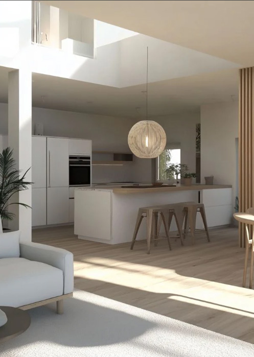 Por lo que he ido leyendo en herramientas de diseño como Planner 5D y otros blogs, los materiales orgánicos (madera natural, lino, algodón, barro cocido o piedra) dominan el interiorismo actualplanner5d.com. Estos materiales aportan autenticidad y sostenibilidad; puedes introducirlos a través de muebles, encimeras, cestas o textiles.